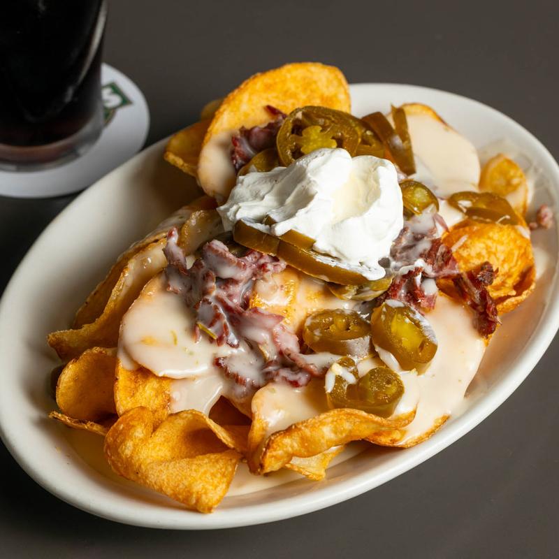 Topped with corned beef beer cheese, jalapenos and sour cream